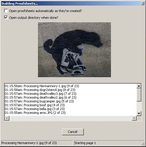 Here's what you see while the proofsheets are being created. At this moment the picture of R2D2 being violated was being added to a proofsheet.